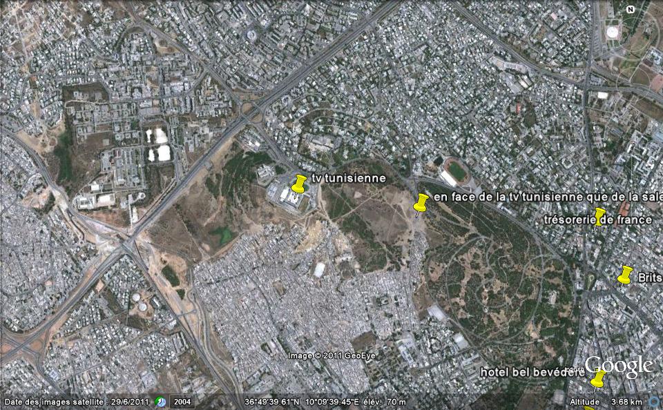 sur google earth tout le portrait de la tv tunisienne et son entourage terrestre sont très visible ....que fait la tv tunisienne et la municipalité de tunis .....rien de rien que de la révolution et comment partager la vrais tarte tunisienne ........